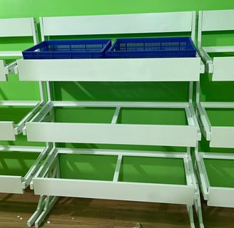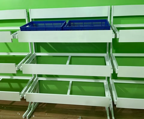 Check out our durable vegetable racks, designed to showcase your fresh produce beautifully.